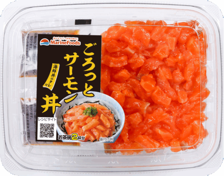 ギンザケをダイスカットし味付しました。添付のタレを使い手軽にサーモン丼ができあがります。