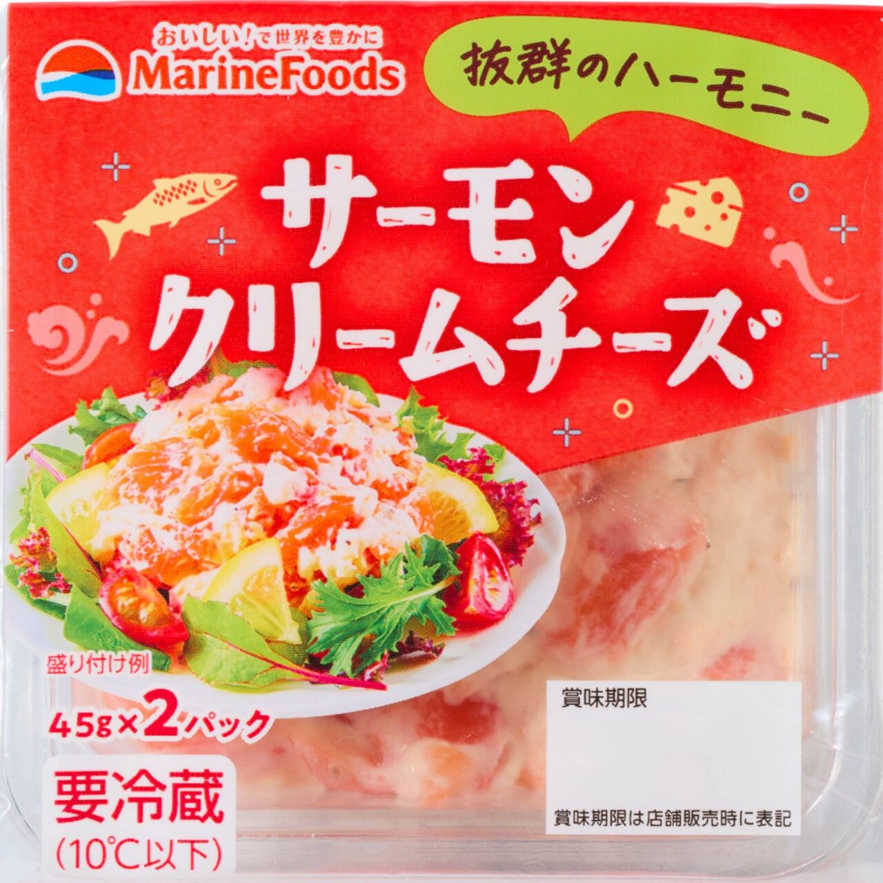 スモークの風味を付けたサーモンに北海道産クリームチーズを加えたサラダです。