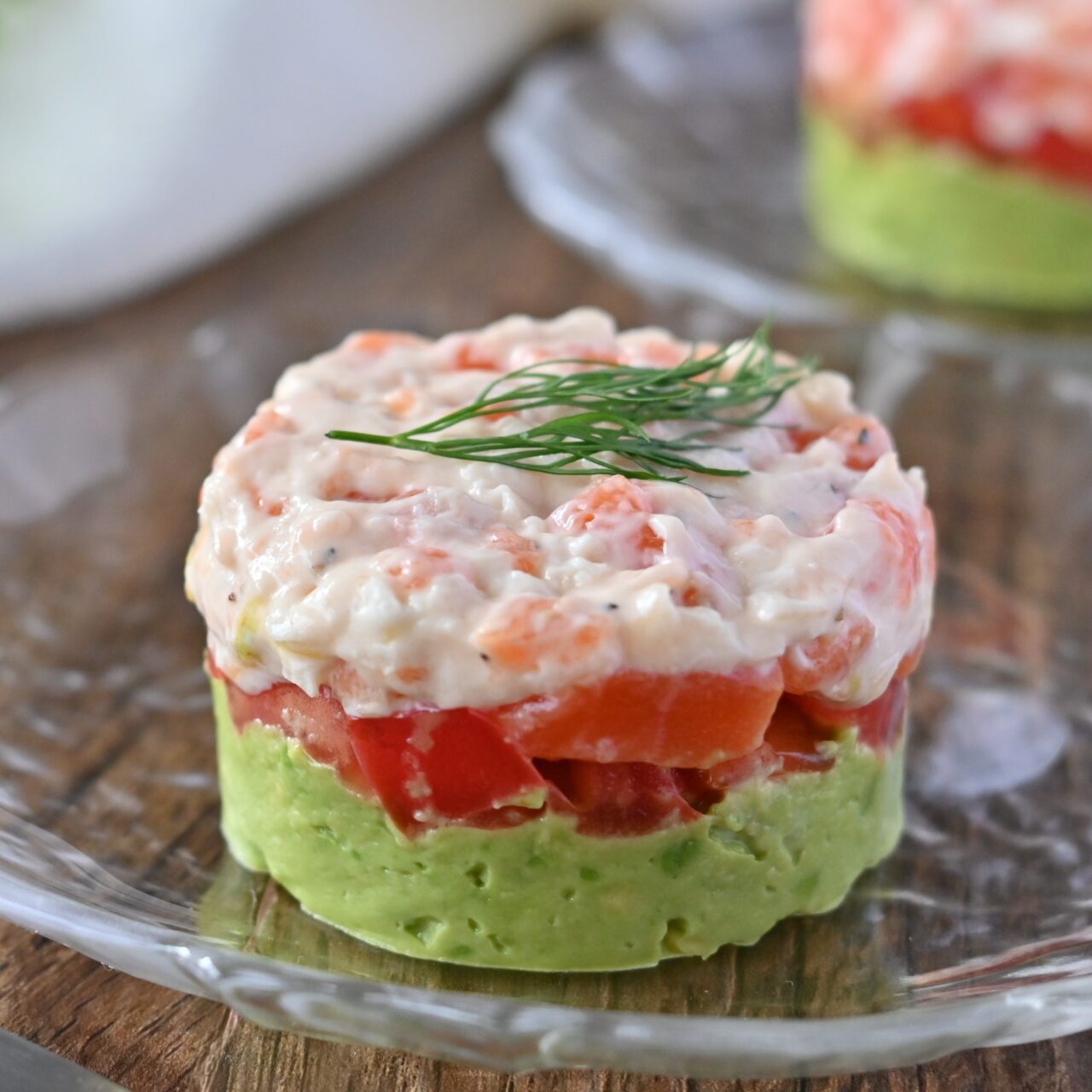 セルクルでつくる✨簡単おしゃれテリーヌ✨ アボカドのコク、トマトの爽やかさ、サモチーのスモーク風味がぎゅっと詰まった前菜風おつまみです🍷 見た目もかわいくて、クリスマスパーティーにもぴったり🙌
